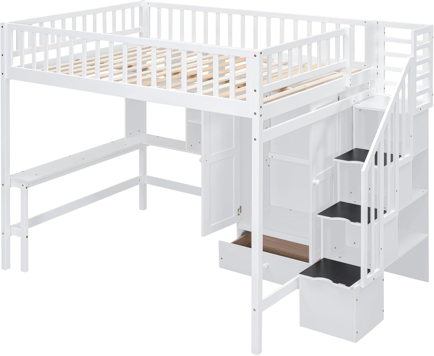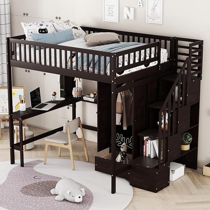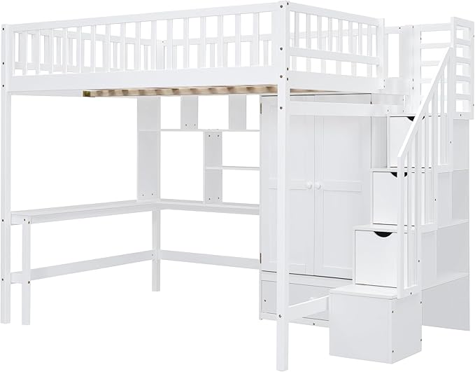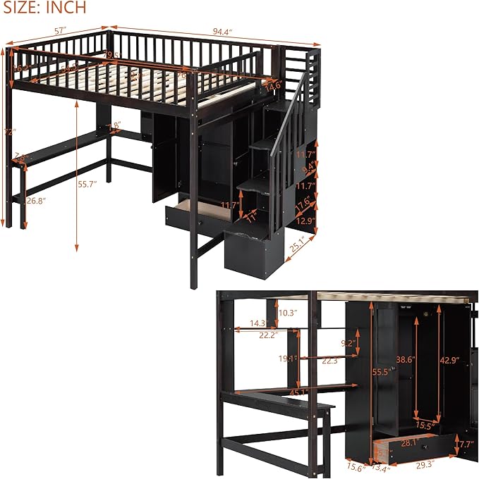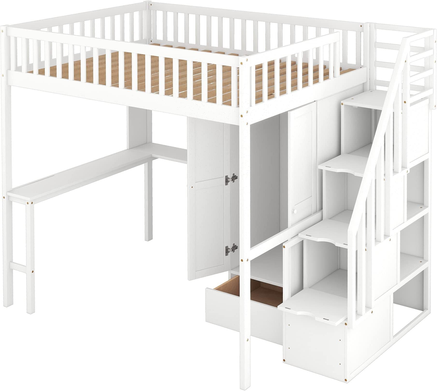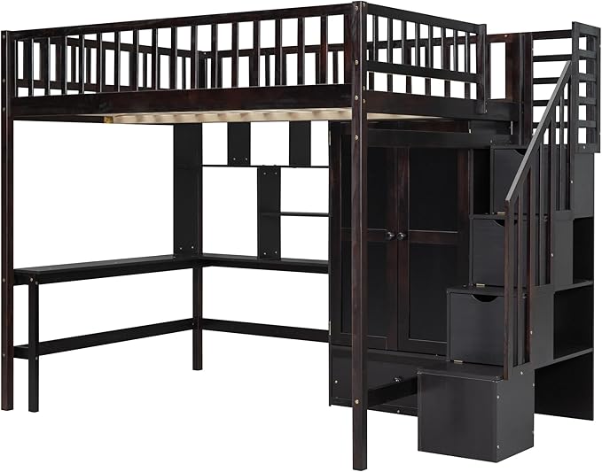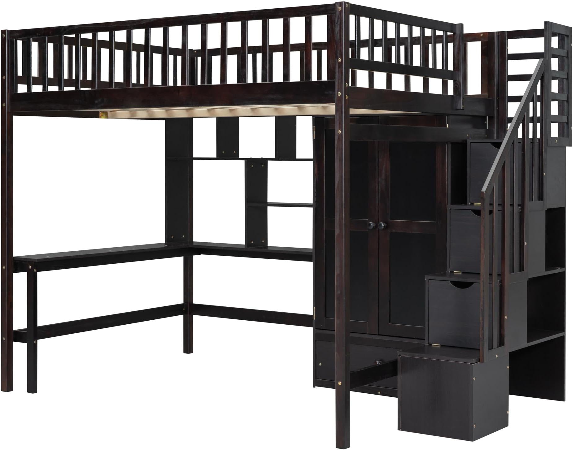 Loft Bed with Desk and 8 Storage Drawers